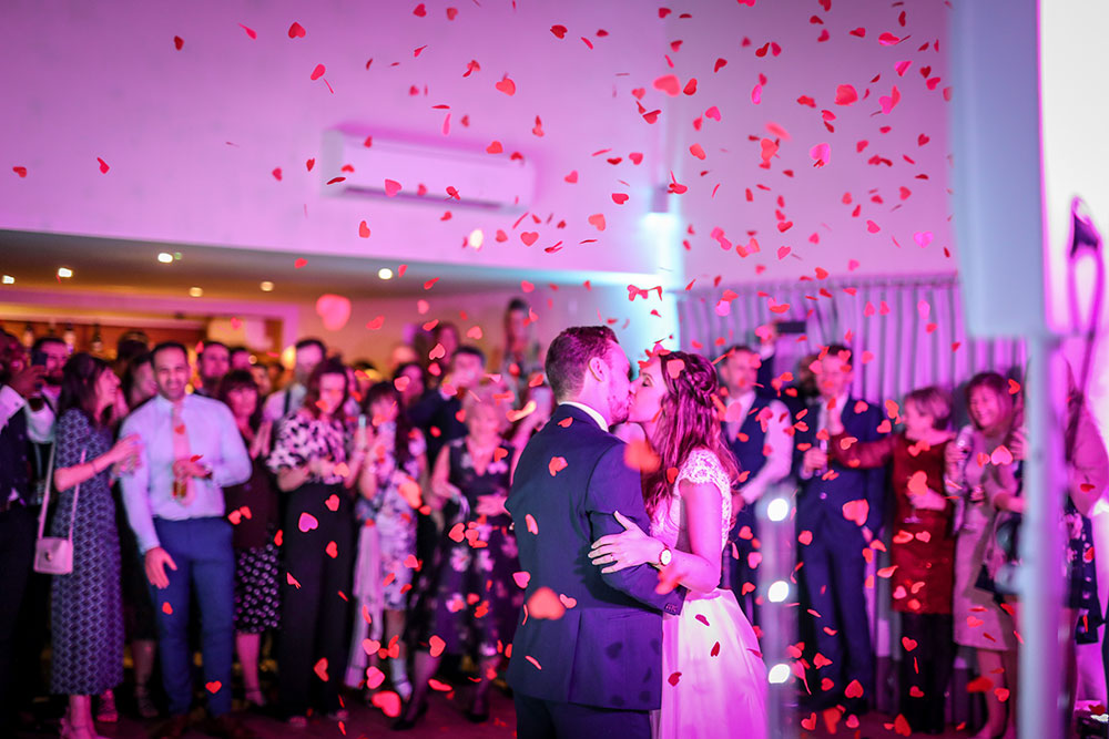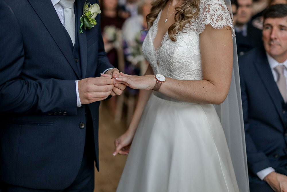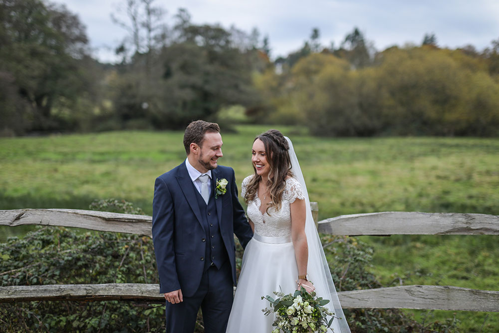 Sam and I had been together for 14 years prior to getting married. When we were planning how we envisioned our wedding day, the most important thing to us was our guests. We wanted a big celebration with all of our loved ones. Millbridge Court was the perfect venue – it allowed us to have all the guests we wanted in a beautiful and intimate space. We wanted the day to have a good balance of traditional wedding as well as being relaxed. We chose to keep the styling very simple, the venue was a beautiful shell that we didn't really need to do much too. We kept our colour scheme neutral, I didn't want to have to worry about working with a specific colour palette and getting caught up in it – that would have stressed me out! We used white and memory lane roses accompanied with a beautiful variety of other white flowers and foliage. The flowers smelt incredible! I didn't want to put my bouquet down!