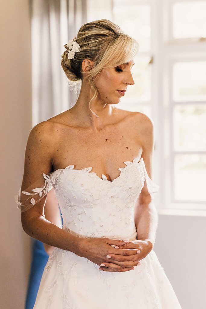 Classic, ethereal, and timeless was the look I was going for. Due to the detail on the bodice of the dress, I wanted to make sure I didn’t overdo it when it came to accessories.