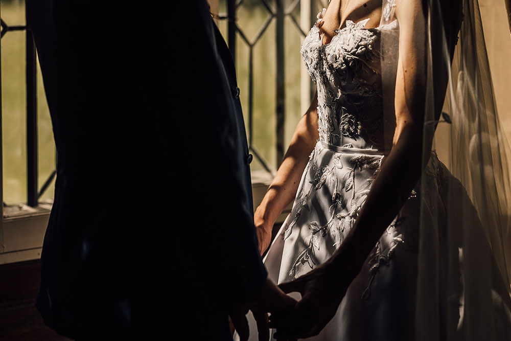 My favourite parts of the whole dress shopping experience was attending the Suzanne Neville designer day, getting a bespoke dress designed by Suzanne herself and incorporating the hand beaded fabric my Aunt had worked on into the design. I previously had other ideas for my dress but navigating different continents, I am originally from South Africa, and multiple postponements due to COVID, meant I needed to rethink my approach. The Suzanne Neville designer day in November 2020 almost didn’t happen due to an impending lockdown, however lady luck was on my side, and we just made it. Other aspects of the wedding felt like the focus was on what other people would like, however when it came to dress shopping it was all about what I wished for. Having the opportunity to try on dresses and have that one-on-one time with Suzanne, meant I was able to discuss the design and visualize the end result. After all the previous disappointments due to COVID, this was this first time I felt excited, and this was thanks to the team at Miss Bush and Suzanne Neville for being so accommodating.