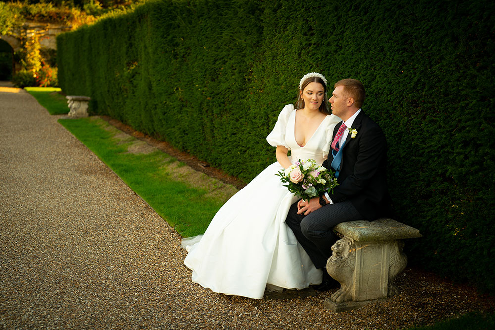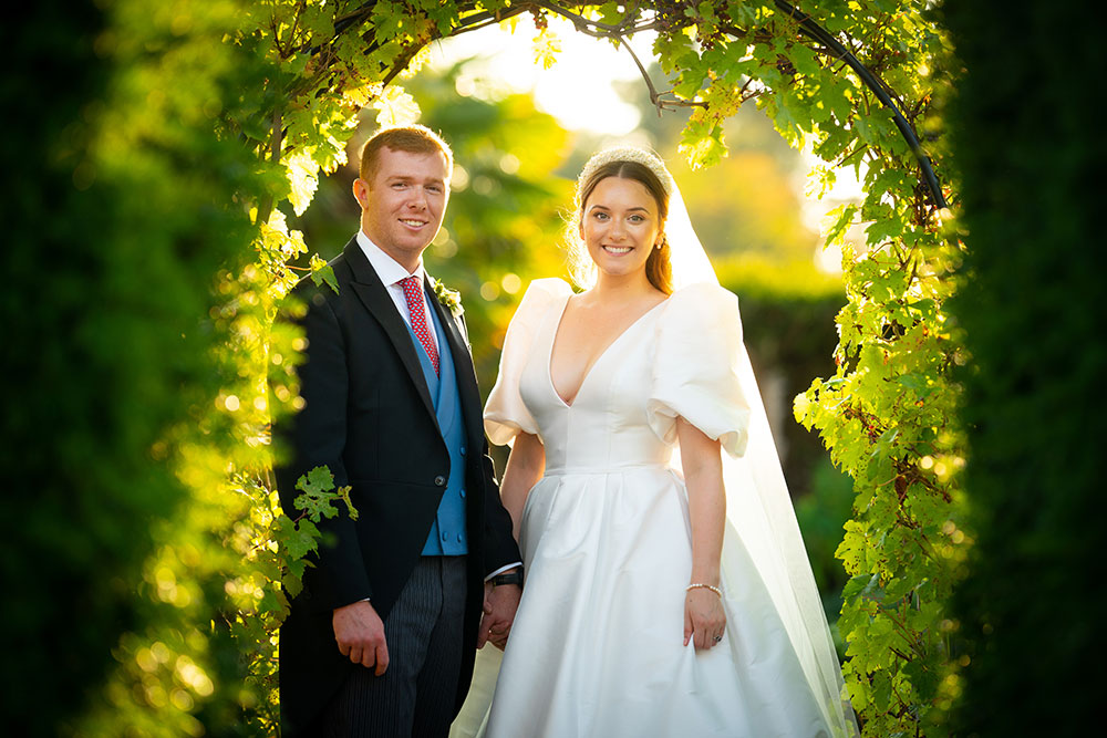 Alice's bridal look was classic and pretty, opting for Jesus Peiro's 246 puff sleeve wedding dress, which she fell in love with before even before setting foot in the chapel! It was the perfect choice for the day, working wonderfully at both the church ceremony and the elegant garden party reception. Alice styled her look with simple accessories, opting for delicate jewellery and a romantic single tier veil, finishing it all off with a fabulous pearl headband.