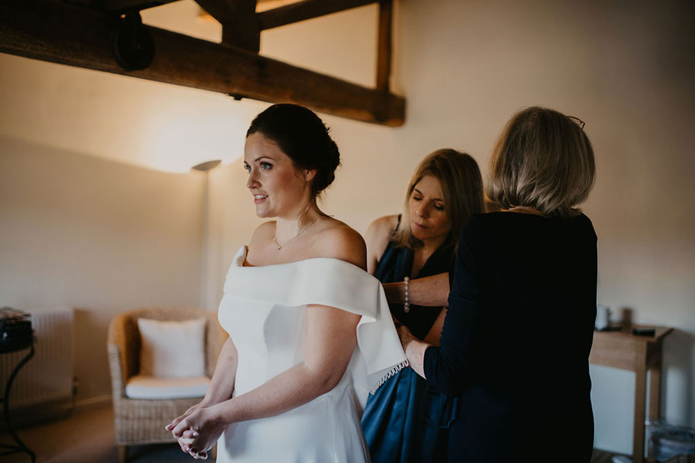 Anna wore an incredible bespoke Suzanne Neville wedding dress for her wedding, which went wonderfully with the elegant but relaxed feel of their day, and looked extra glamorous with a faux fur stole!
