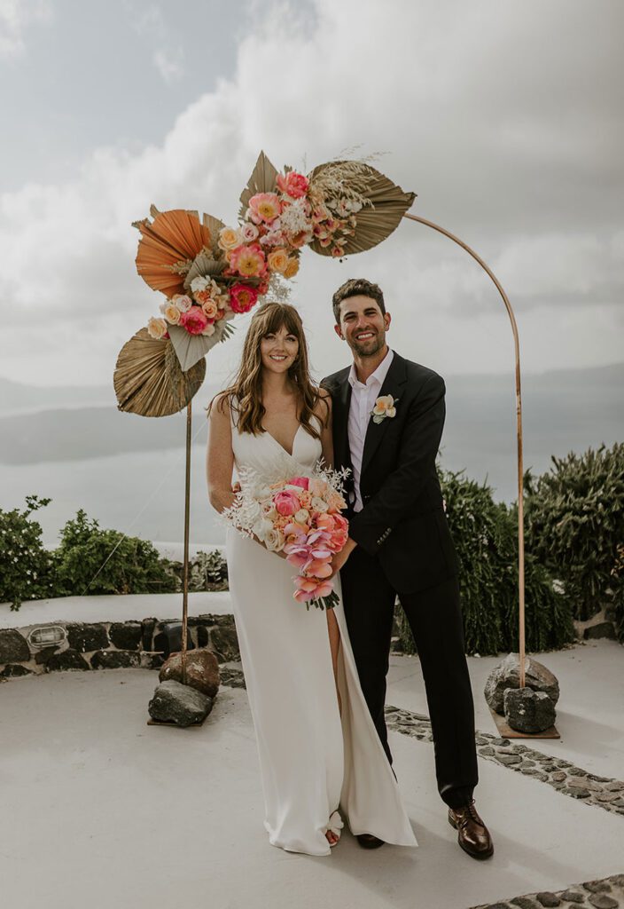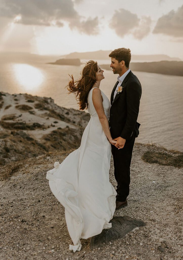 We got married in Santorini because we love the Greek Islands and have been every year since we met, plus Nicks heritage is Greek! Travel has been a big part of both of our lives so it felt right for us to have a destination wedding. The venue we chose had the most incredible views and was the perfect size for the number of guests we wanted. The ceremony was very emotional, we wrote our own vows and as a surprise for Nick I had asked one of our guests, who owns a bespoke wedding song company, to perform a song he had written about our relationship - the song was both sweet and funny and was a huge highlight of the wedding!