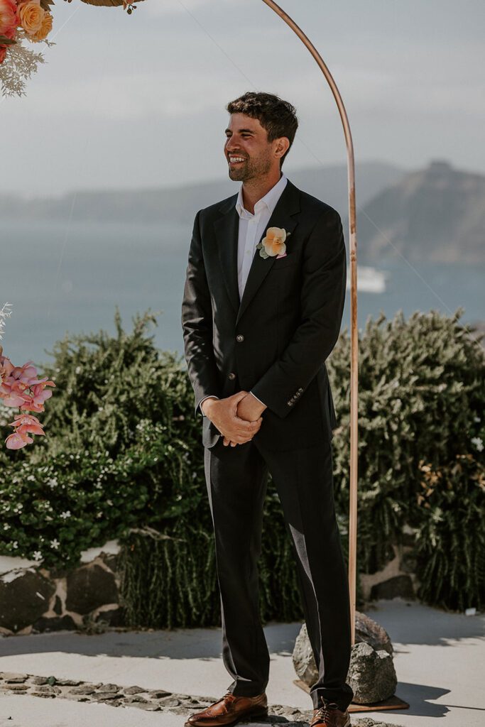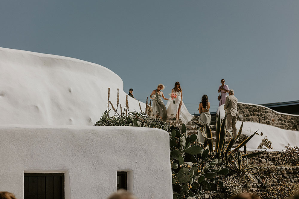 We had a great three piece band called Marmitas who came over from Crete and performed during the cocktail hour whilst Nick and I went to a nearby village and cliff with our photographer for our couples portraits. Our wedding was in more of a local traditional area of Santorini so there were very few people around which was nice and we had so much fun with Sarah, our photographer.