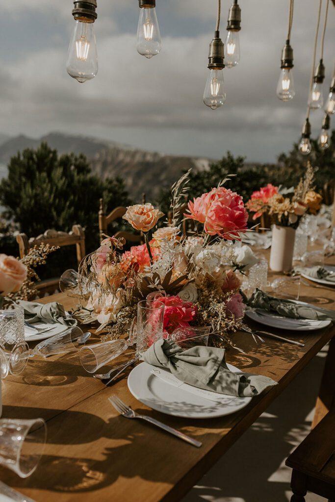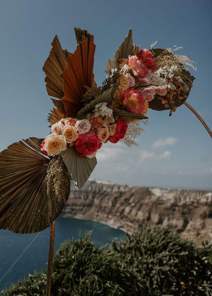 I was so happy with how the tables turned out for dinner with the flowers and lighting etc, they were exactly how I wanted them to look. The colours of the flowers looked absolutely stunning as the sun was setting. We had a Greek menu for dinner and the food was delicious although I could barely eat anything from all the excitement! After the wedding, we got a coach to a bar in Fira called Tango where we had our own area on the cliffside overlooking the caldera with some more stunning views!