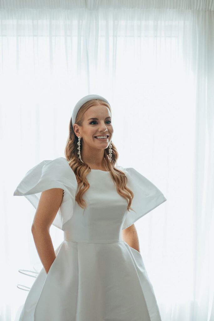 The dress I envisaged didn't exist. I knew I wanted a higher neck and back with sleeves, preferably in Mikado. I knew you could tweak the designs at Miss Bush having read reviews, but Ben was so helpful from the first appointment, he really was an integral part of the design!