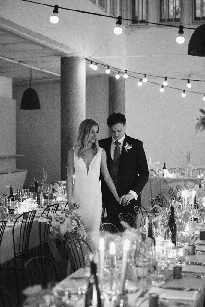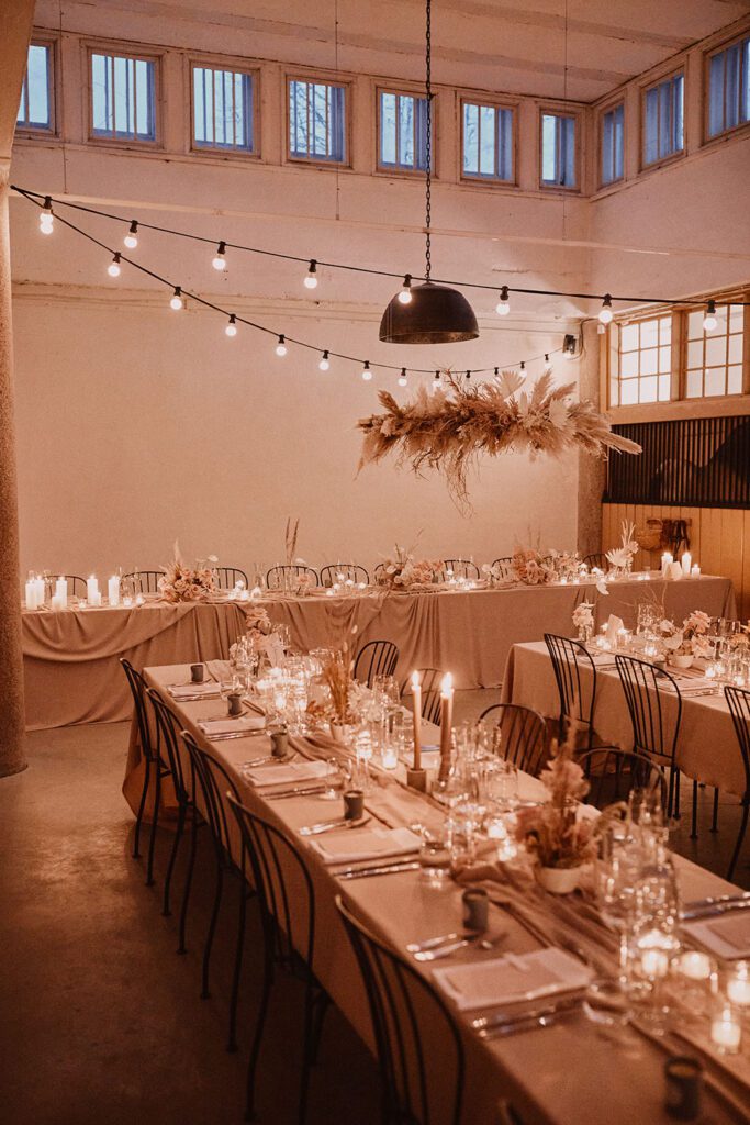 We got married in the same church that my parents got married in, in central Helsinki, and on the same date as them too (22nd February). So the date and church had a lot of meaning behind it and was really special. My dad said it was quite incredible walking down the same aisle on the exact same date, 35 years after his own wedding. The reception was at an old orangery and farm half an hour outside Helsinki in the countryside. It's a white washed, minimalist building, with big rickety windows and paint peeling off the walls - exactly the rustic blank canvas we were after. Our wedding stylist, Nord and Mae, described the style as "withered country house with a broken, wild romance" which I think summed it up quite well. All the flowers, table linens etc were in natural, earthy, muted tones. I wanted to embrace the Scandinavian love for simplicity and nature, so we had lots of grasses, branches and twigs inside, rather than lots of perfectly polished flowers. Our stylists did an amazing job transforming the dinner space into a candlelit oasis! We had what can only be described as biblical weather, it was storming all day with torrential rain and high winds. It made for the best atmosphere inside with candles flickering in the dark, and really got the party going too.