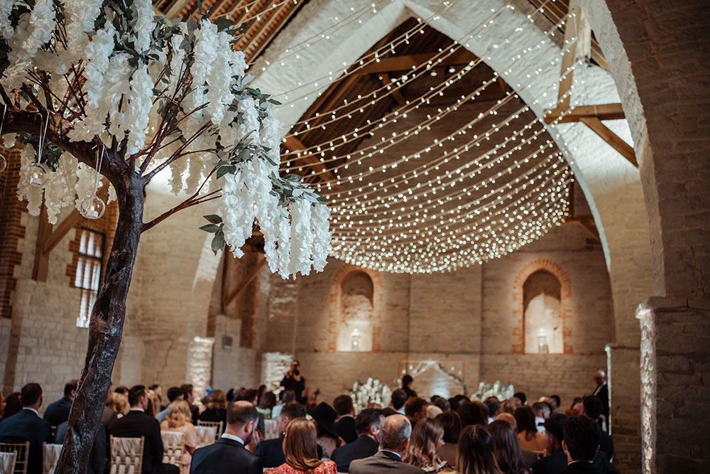 Clare & Will's beautiful Surrey wedding took place in Spring at The Tithe Barn in Petersfield, with romantic fairy lights, elegant styling and lots of beautiful foliage and flowers.