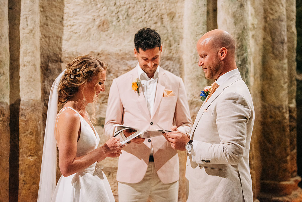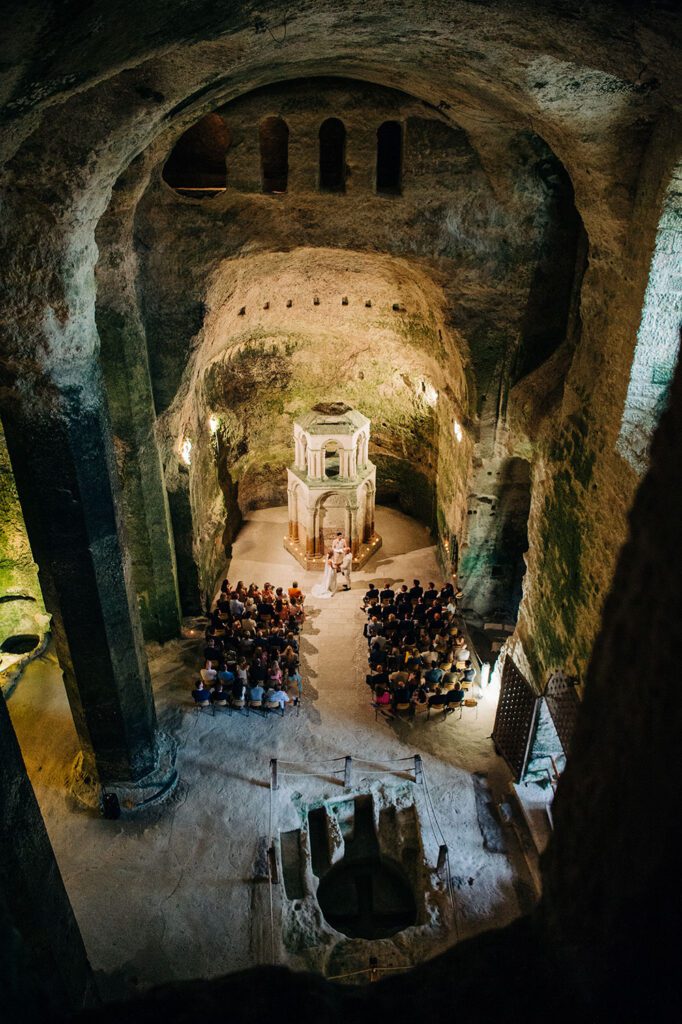 Emily and Simon were married in the south of France with a glorious three day celebration, in late June. The ceremony took place at an absolutely breathtaking venue - Eglise Souterraine Saint-Jean - the Subterranean church of St Jean, an incredible space carved into the limestone cliffs of Aubeterre-sur-Dronne.