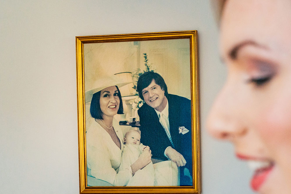 My ‘something blue’ was my engagement ring, as the central stone is a pale blue sapphire. It was originally my mum’s ring, so it was nice to be able to have it as one of the good luck objects on the day. My mum died in 2012, so it was very important to me to incorporate elements that represented her into my big day. Not having her there on the day, or to join in with the fun of wedding planning beforehand was really tough, as we were so close. It was only fitting that I had part of her dress stitched into mine. Jo was very accommodating of this request, and when it came to deciding where to put the piece, she suggested having it right next to my heart. This meant so much to me, and is another example of how Miss Bush go above and beyond to cater to brides and their requests.