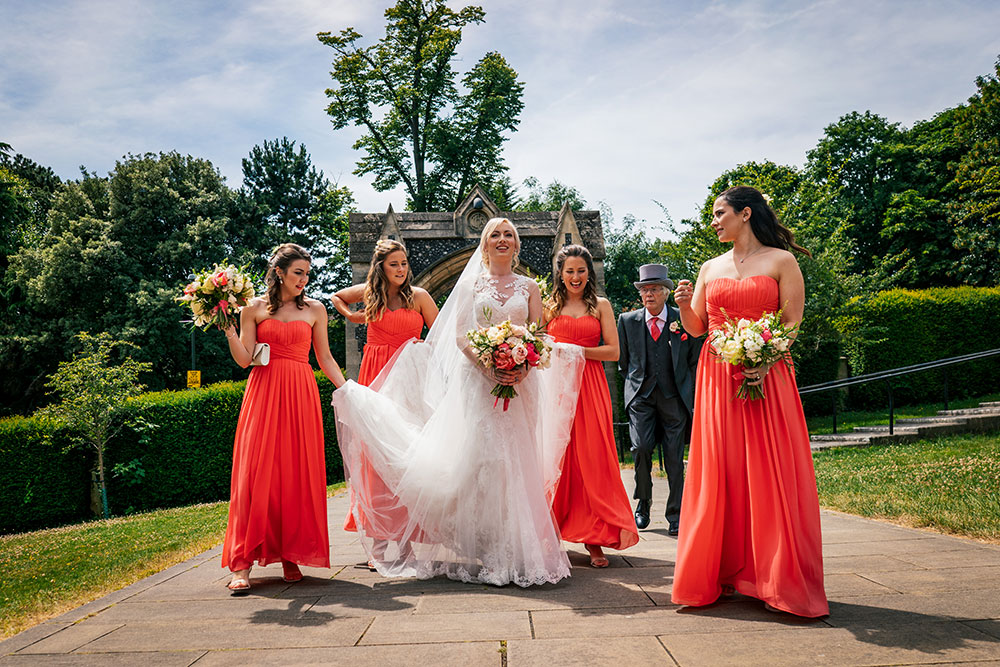 We went for a coral colour scheme. Coral was my mum’s favourite colour, so again this felt like a clear and easy decision when it came to the scheme. The only trouble I had was finding the perfect colour of bridesmaid dress, as coral can vary quite drastically in shade. I was really lucky to find mine on Asos. It was the perfect shade of coral, and it really suited my six bridesmaids and their differing skin tones and hair colours, plus I got it on sale so it was a bargain!