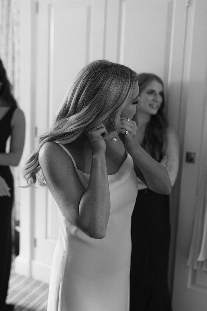 Once my dress had been tailored by the wonderful team at Nortier Shallow, I went to Miss Bush for an accessories styling appointment with my mum. We had a fabulous time, drinking champagne and looking at different options for statement jewellery. The drop pearl earrings from Miss Clemmie were an instant favourite and I matched them with a pearl handbag. My lovely friend offered to lend me her pearl headband a few weeks later which I wore with my evening dress.