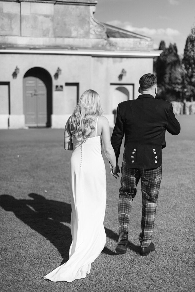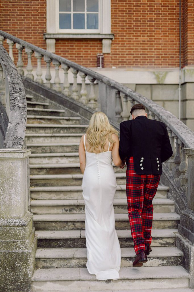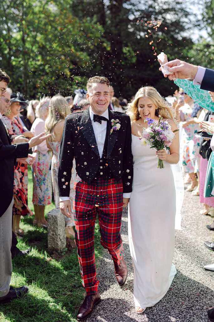 Jack was really proud to wear his family tartan on our wedding day. It's red, green, blue and white so it was always going to be bold choice! In contrast, I always knew I wanted an elegant, modern style for my dress and liked the simpler, slimmer fits, particularly as I have a small frame. I loved the idea of a timeless, understated and elegant dress styled with statement jewellery. I felt so confident on the day and loved every minute wearing my wedding dress.