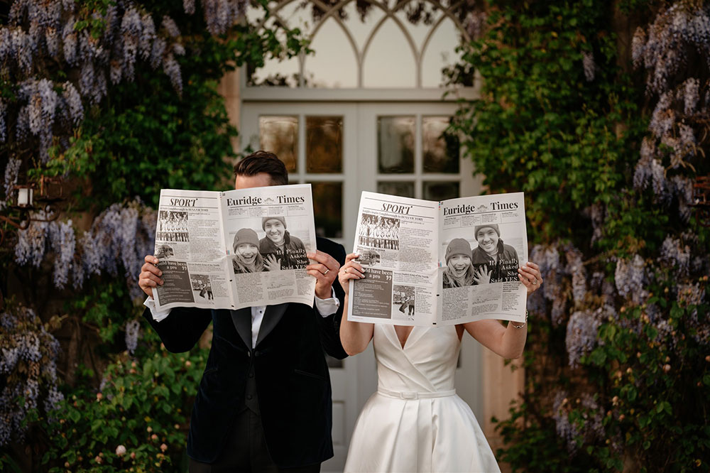 We wanted to make sure our day was really personal to us and our friends and family - and we love a party! Rather than giving each guest an order of service, order of the day, table-plan and menu; we made a newspaper with everything in it!