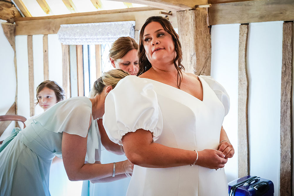 I wore a Suzanne Neville bespoke gown with puff sleeves. I loved it!!! I never thought I would be able to wear something so beautiful due to my size and my boobs!!