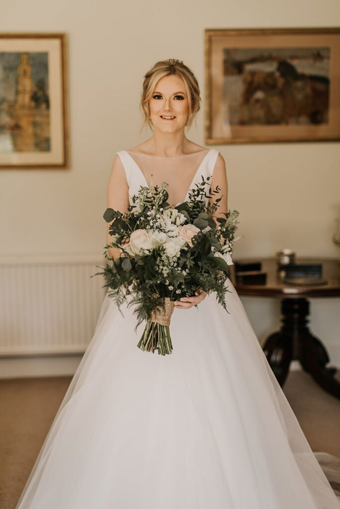Gemma wore 926 by Jesus Peiro which was a perfect choice for a Spring wedding, with a light and ethereal floaty silk voile skirt and delicate embroidered petal detail.
