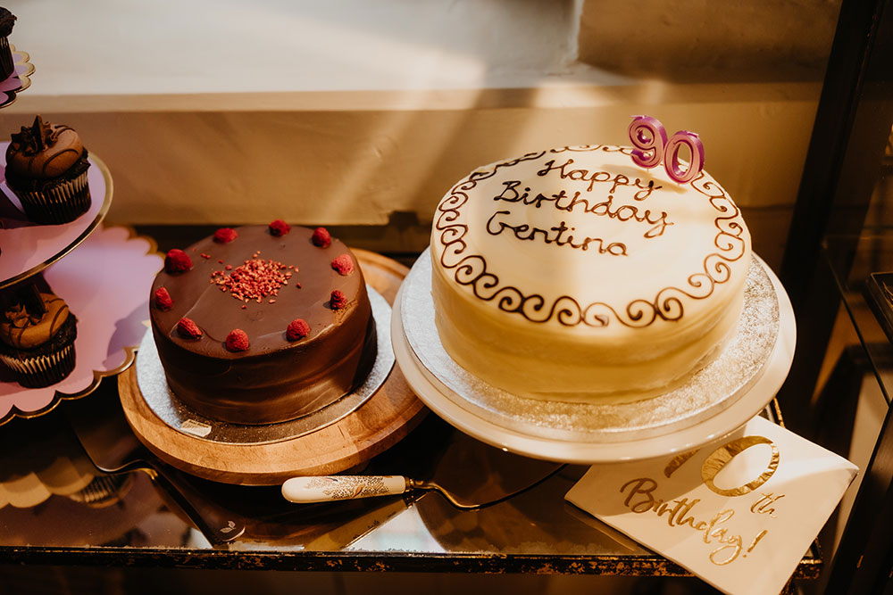 The chapel was the perfect spot to celebrate Gen's 90th birthday, featuring a beautiful floral arch by Gill Pike Florist in rich shades of purple, catering from Two Many Cooks, gluten free cupcakes from Flavourtown Bakery and gorgeous birthday cakes from Konditor Cakes.