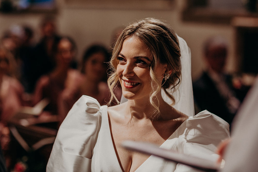My mum had come across the 246 on the Miss Bush Instagram page prior to me even getting engaged and had sent it to me as an idea for the future. The following year after getting engaged, I couldn't stop coming back to pictures of this dress and we booked an appointment at Miss Bush predominately so I could try on this particular dress. I did try on several beautiful Jesus Peiro styles, however my favourites were a tie between a Suzanne Neville dress (very different in style, but with sleeves also) and this one, so Emma suggested I give it a couple of months to think about it before coming back for a follow up appointment. By the time I arrived at the second appointment I knew that this was the dress for me and that we would be ordering it that day. I just felt so comfortable and at ease in this dress, and quite happily would've walked down the aisle in it the very next day. What I particularly loved about this dress was the timelessness of the style, but with the contemporary addition of the huge puff sleeves and the practical element of POCKETS!!! The full skirt and train made this dress 'bridal' which I had wanted to tie in with our traditional church service, but the V neckline and pleated front added a little something different. I also really loved the sustainable nature of the fabric having been made from plastic bottles collected from the ocean (especially as I will only wear this dress once).