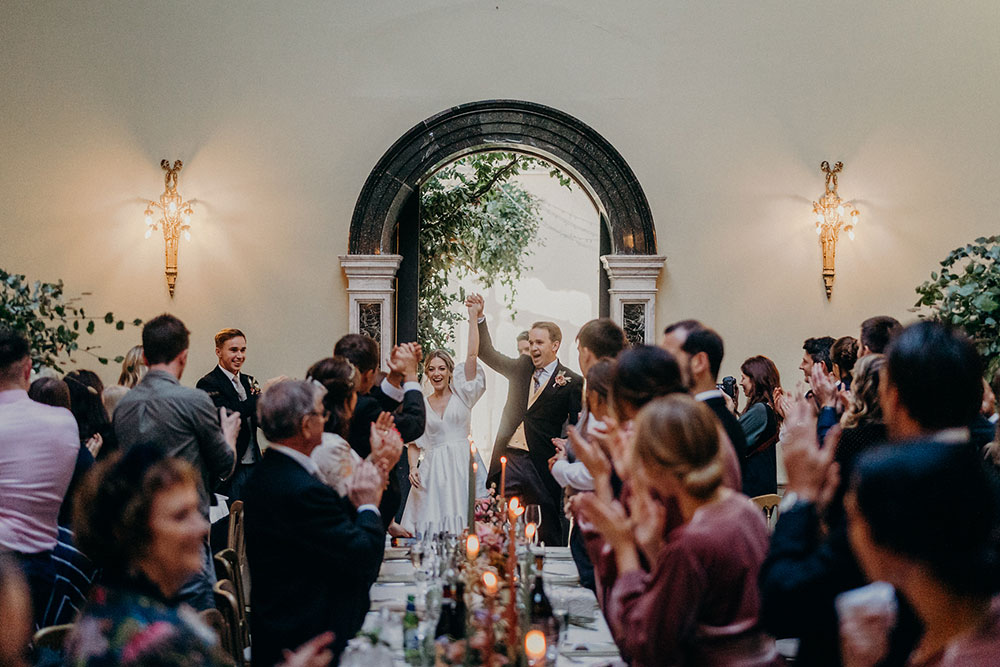 I didn't have a particular theme or style for the day, but I didn't want anything to look too 'forced' and to be as natural as possible. I wanted to have lots of dusty pinks and autumnal colours throughout the flowers, bridesmaid dresses, and table settings. Flowers were a big part of the day for me - I had so much fun brainstorming with Ali at Mad Lilies, and even went to meet her at Hampton Court House to see a wedding set up to help me visualise what I had requested. I wanted long relaxed tables for a more convivial setting at dinner, and we worked together on some eucalyptus garlands spotted with candles and flowers here and there. My mum even decorated the wedding cake she had made with flowers! Hampton Court House is just so beautiful anyway, that the need for a theme isn't really necessary there, so I let the flowers do the work in the dining room, and the gorgeous views of Bushy Park from the main hall, as well as the palm trees from the venue conservatory did the rest!