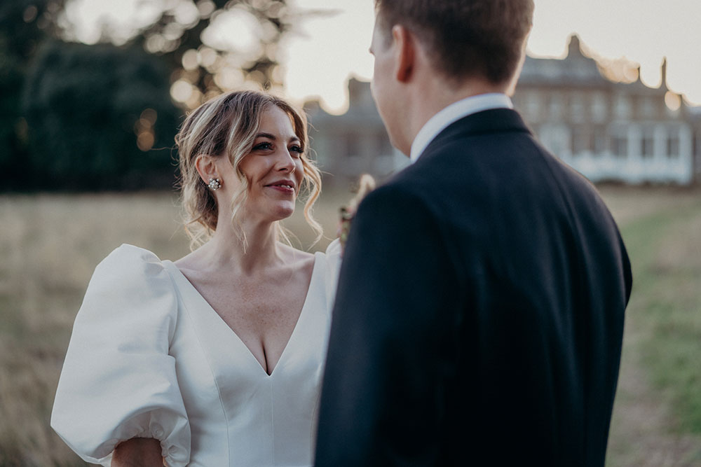 Hannah fell in love with her Jesus Peiro 246 wedding dress before even setting foot in the chapel, after discovering it on the Miss Bush website. With its full, romantic skirt and elbow length puff sleeves, 246 was the perfect choice for Hannah's autumnal manor house wedding to Alex, carrying the bride from the traditional church ceremony all the way through to the dancefloor at their fabulous evening party.