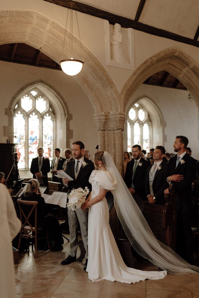 From the early days of planning, we knew we had three priorities. We wanted the wedding to feel really personal, with great food, and a really fun party. I had quite a particular idea of how I wanted our wedding to look and feel, with a soft, natural colour palette, and plenty of thoughtful touches. From our welcome dinner the evening before, to coffee and pastries on the lawn the morning after, our wedding planner and stylist, Rebecca, helped us bring this to life, beyond what we could have imagined.Our incredible florist Grace created a huge array of fluffy, bright white and soft nude pink flowers arrangements, which matched the flowers naturally blooming at Boconnoc in June. Tall, nude tapered candles, oat coloured linens and stoneware crockery filled the room, and guests found their tables via 'love notes' that we'd written to each of them, an small way to share how much their love and support means to us both.For our food, we stayed true to the English countryside venue, serving local, Cornish produce - including a huge pan of fresh scallops in shells - herb crusted hake and local lamb - and offered Cornish pasties late at night, for our guests. We served English sparkling wine, and opted for a very lavish pavlova, which we decorated and cut, instead of a wedding cake.Our final non-negotiable was the music, so much so that we ended up with live music playing throughout the full 12 hours of our wedding. Our incredible band, The Distractions, played the saxophone throughout our reception and cocktail hour, surprised guests with an r'n'b set during dinner, and finished off with an epic four-hour show band set. We danced the night away until 1am, when the dance floor was still packed!