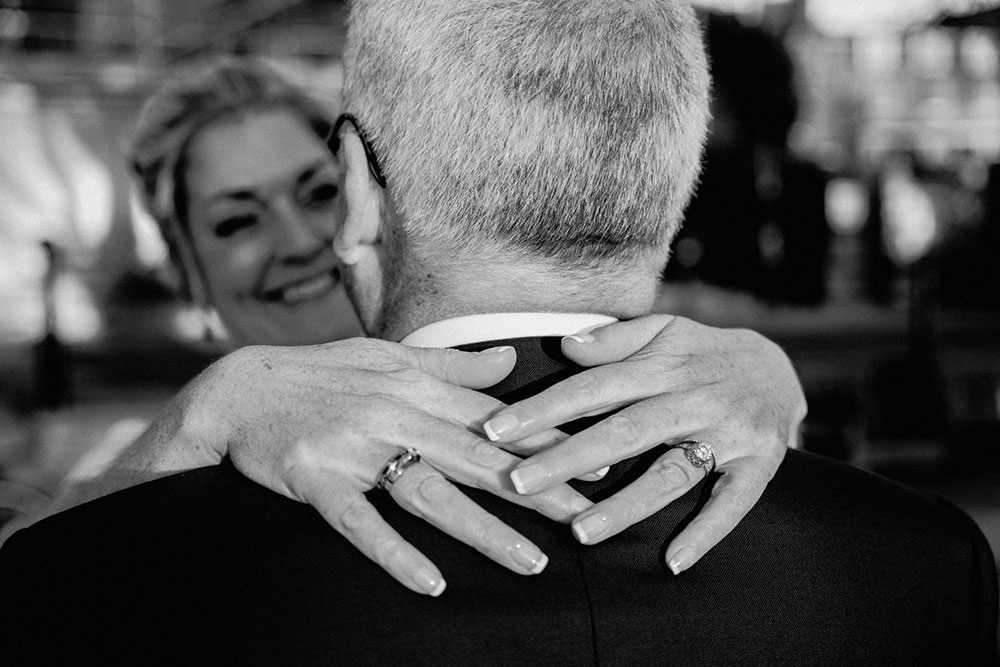 I sadly lost my Mum 20 years ago but I so wished her to be part of the wedding day in some way. My parents married in 1962 and her dress was a beautiful figure hugging long sleeved bodice with a knee length full skirt with lots of petticoats. Her dress was donated to charity soon after her wedding day and sadly neither myself nor my sister got the chance to see it never mind wear it. I knew I wanted a similar silhouette with a longer skirt. I wanted to buy shoes that I would wear again so didn't go for 'Wedding shoes'. I rather went for Colombia shoes in gold from Dune; with their comfortably low kitten heel, asymmetric strap and the stylish pointed toe they gave a nod to the 50s/60s look I was going for. The comfortable heel was more great advice from Emma at Miss Bush. I've worn them lots since. I love them too.