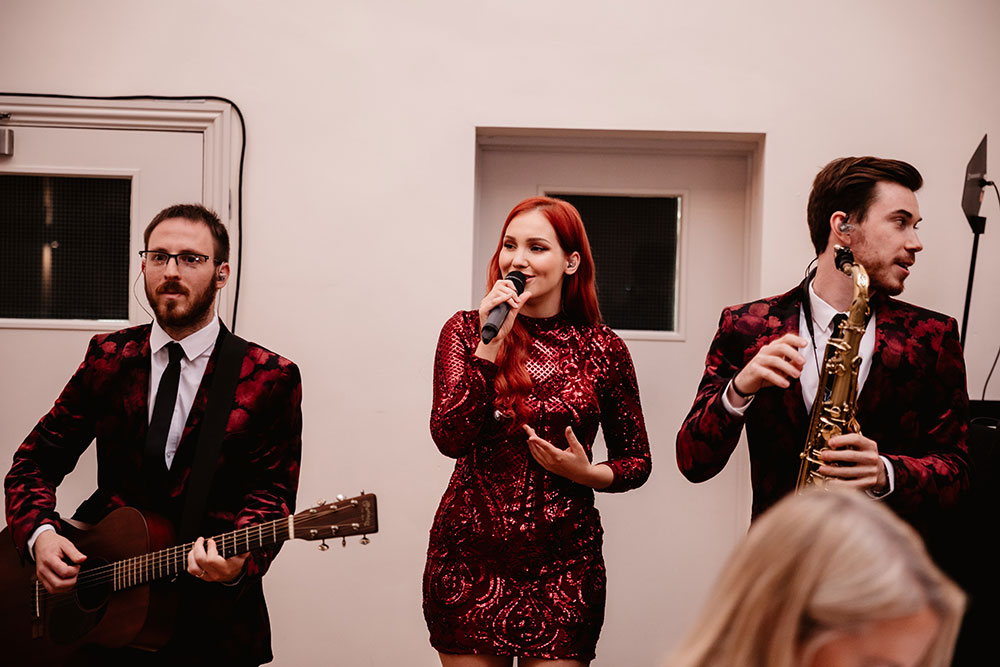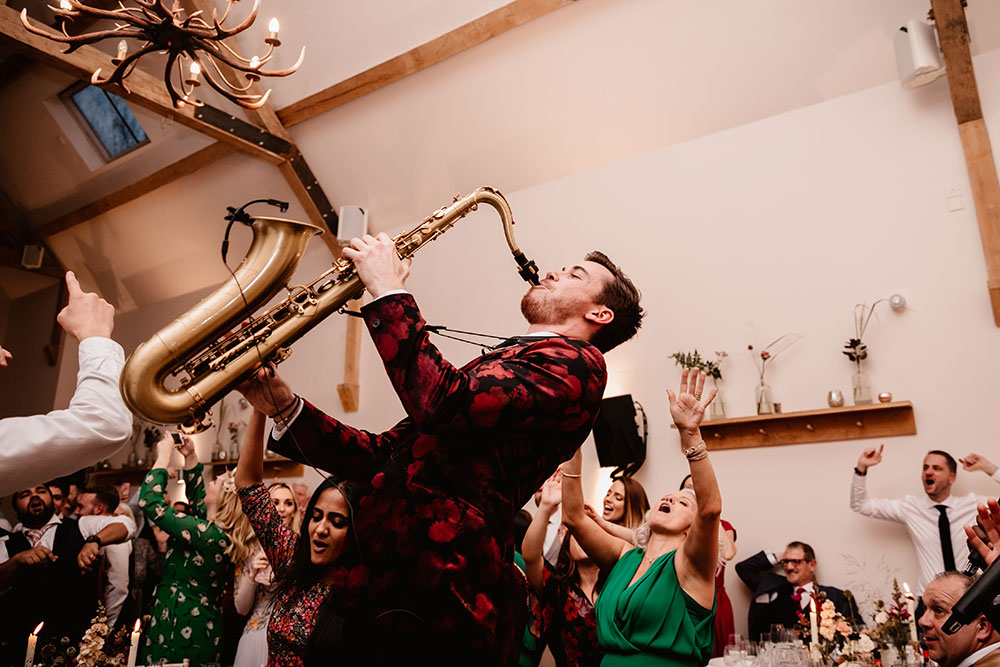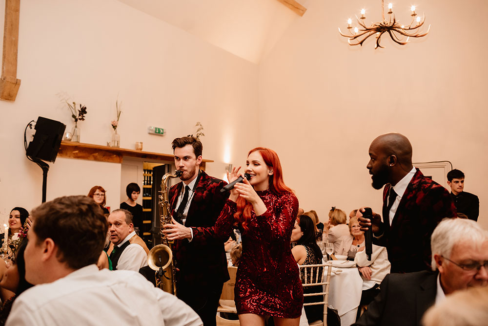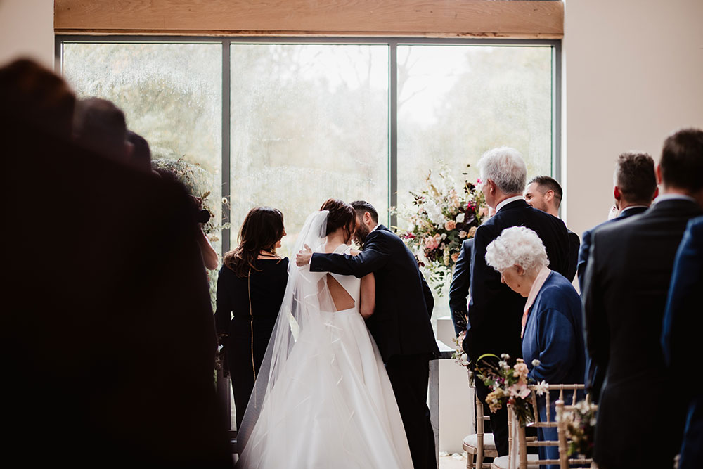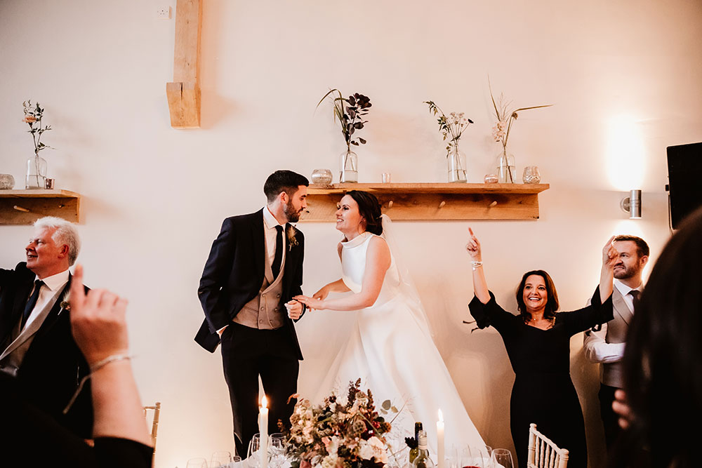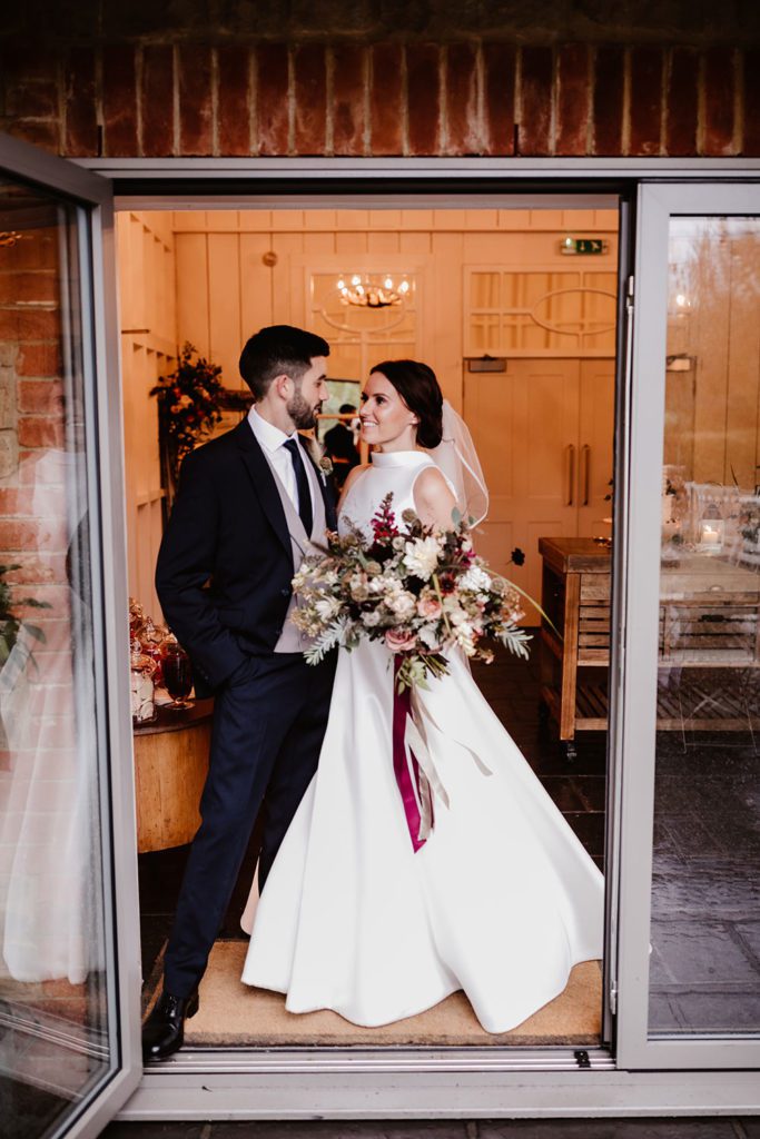 I wanted our day to feel modern but really cosy; tasteful with all the little details that even if no one else noticed, I knew were there. As we were getting married in Autumn, I wanted to bring through the beautiful golds, berry and blush colours which fit our venue perfectly too. Our venue itself didn’t need a lot of styling, which is what drew me to it in the first place, it was beautiful on its own and our florist Hannah Berry recommended ways to repurpose our flowers during the day which saved us some pennies and worked perfectly! The food/drink and music on the day was really important for us both. Kalm Kitchen provided the most delicious beef for dinner followed by a Patisserie Bar with lots of mini desserts for pudding. The espresso martinis afterwards were a particular favourite amongst our guests! To top it all off, our band were just incredible, they sang throughout dinner right through to the end of the night, keeping everyone dancing the entire time! We had a massive party with everyone we loved – it was the best day ever!