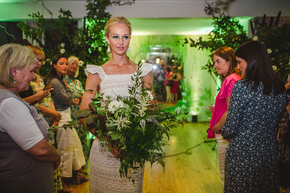 The chapel was styled using a wealth of foliage, plants and flowers to reflect the classic Greek mythological ideas of Nymphs.