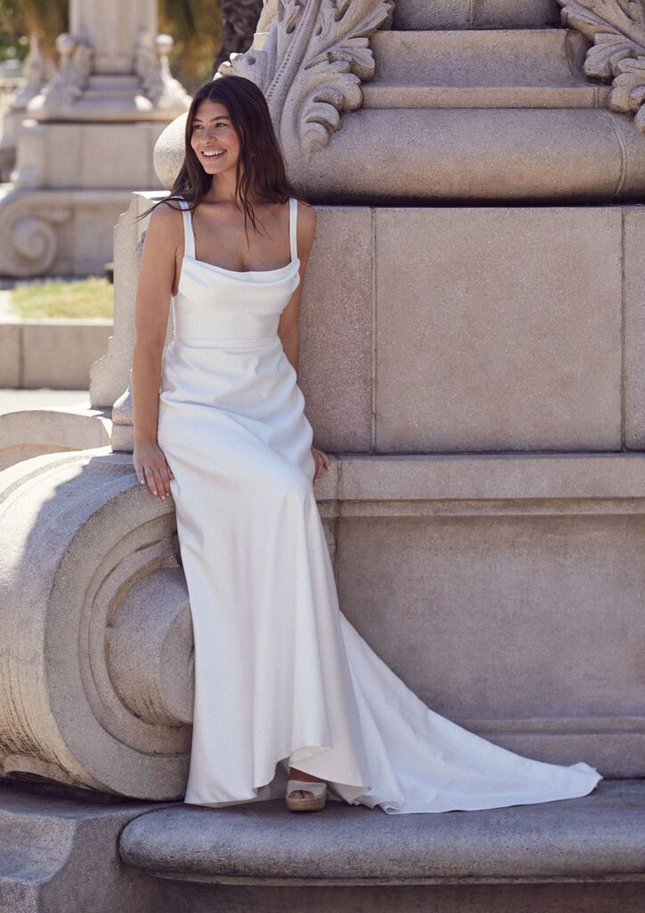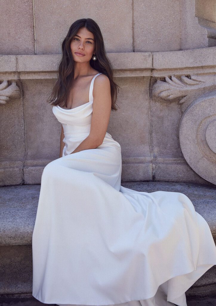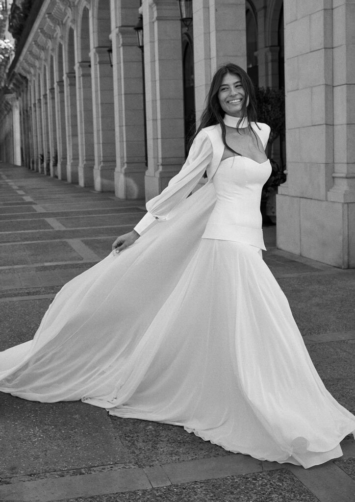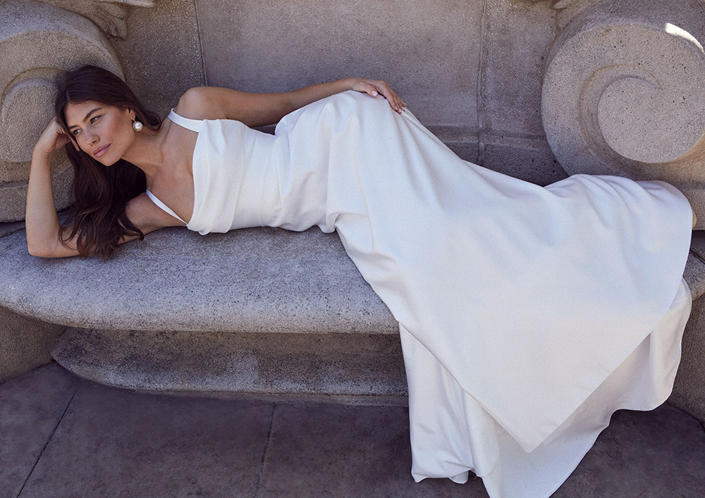 A selection of beautiful editorial images from the Jesus Peiro 2026 bridal collection campaign, showcasing the selection of dresses we have chosen for Miss Bush.