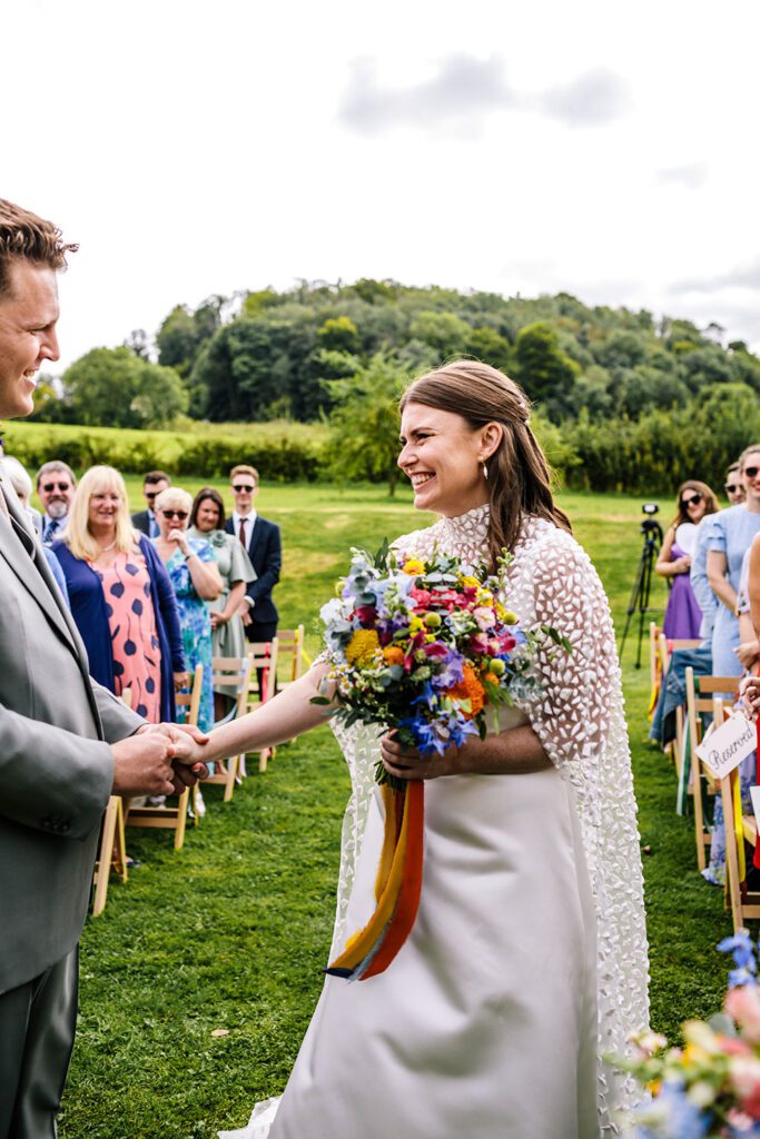 I wanted to keep my accessories simple as I felt the dress and the cape gave me everything I really needed. I had two different types of pearl earrings (the second pair with a matching necklace which I put on once I removed the cape) both from Etsy and my pearl hair pins were from there too. My shoes were a great buy from Debenhams online (a bargain at £36!) and were super comfortable. We were getting married outside so I needed to be able to manoeuvre a grass aisle!