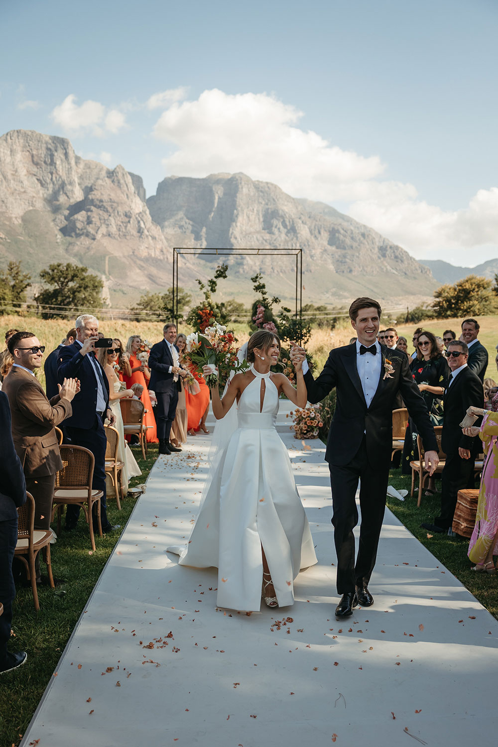 We have the most breathtaking wedding to share with you today! Tarryn and Luke were married in South Africa at the stunning Boschendal wine estate in Franschhoek, with a backdrop of the most magnificent scenery,  a vibrant orange colour palette, beautiful styling and incredible creative floral displays.