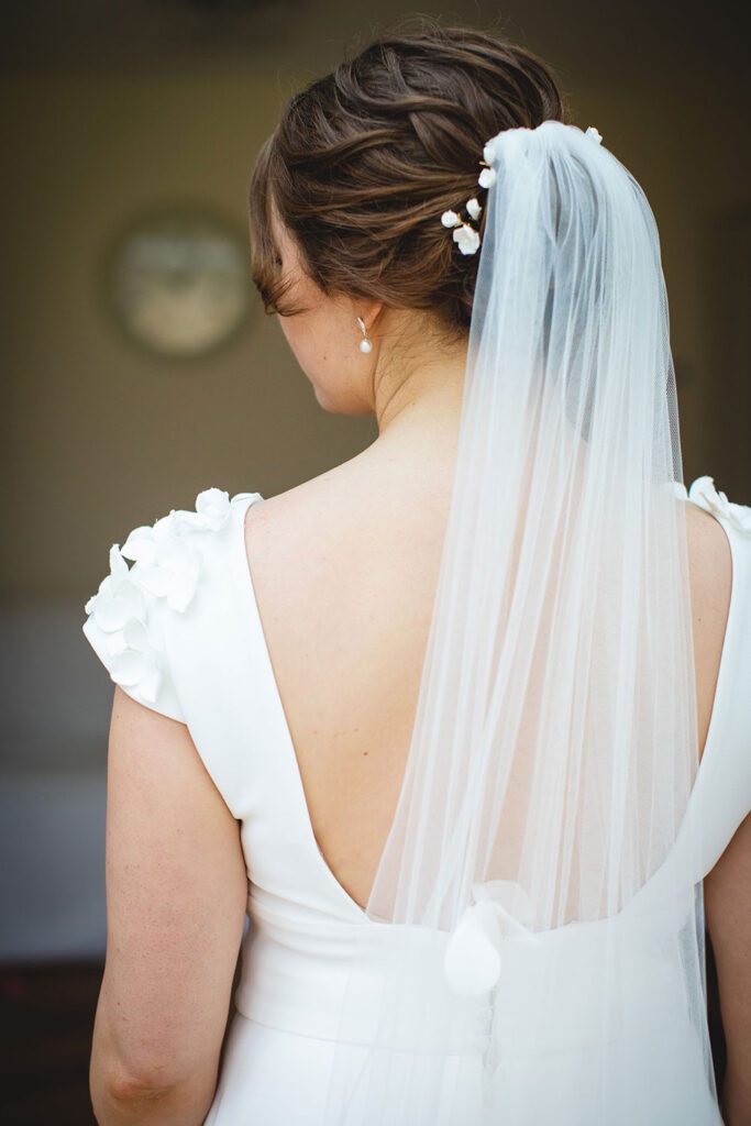 I initially wasn’t sure about the petals on the shoulders and even considered having them removed. But I came to see that they brought the whole outfit together and worked perfectly with my veil and hair pins.