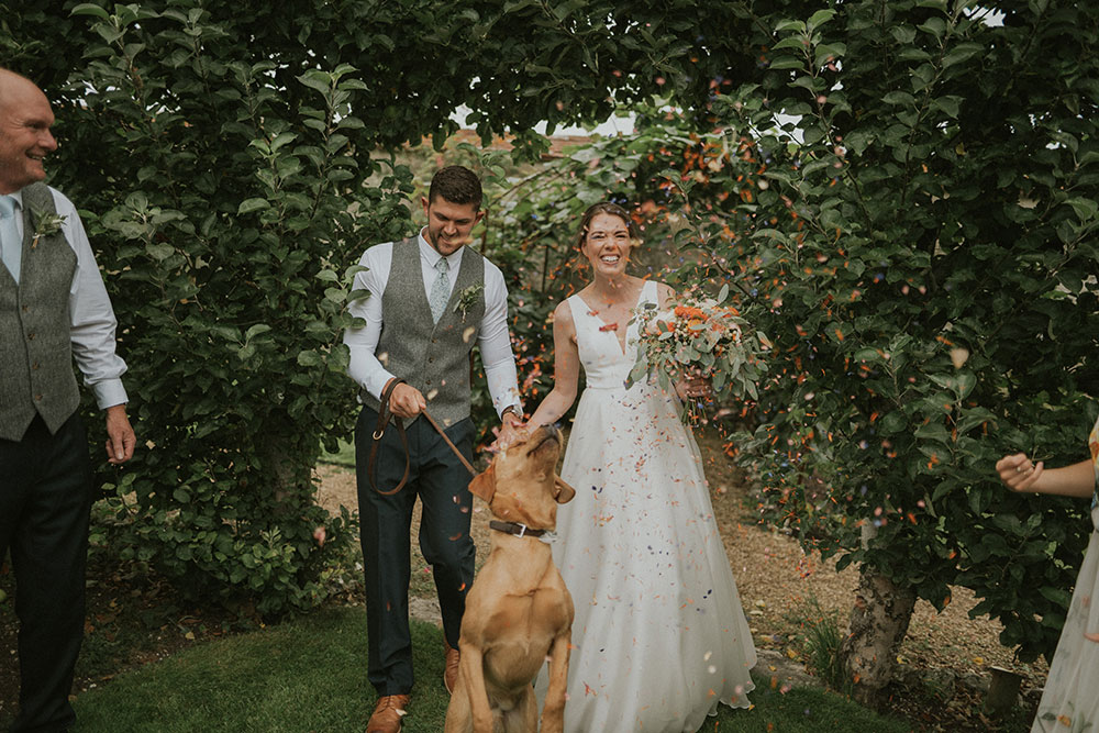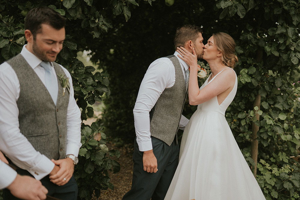 I really surprised myself on this one. I assumed the meal and dancing would be my favourite part, but I adored the ceremony and the speeches. They were the very best bit for me! The ceremony took place in the walled garden at Houghton Lodge and my fiancee and I stood under one of the apple arches with our bridesmaids and groomsman on either side of us and our guests sat in a horseshoe around us. It felt so intimate and I could see every smiling face. It was the first legal wedding Houghton Lodge had hosted outside so that felt really special too.