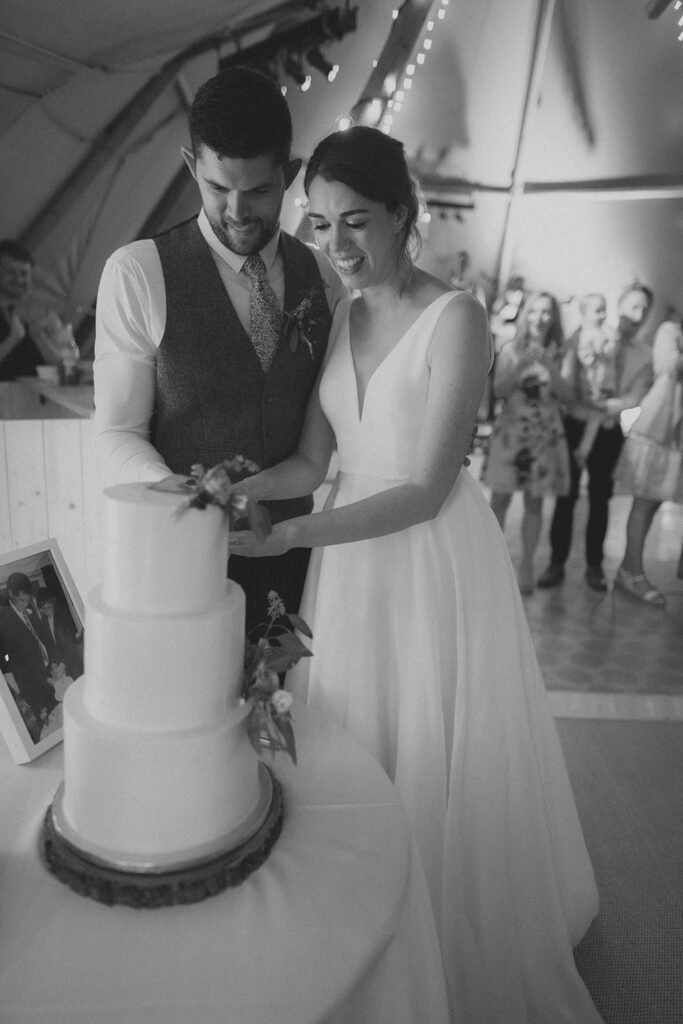 I kept my look very simple on the day and let the dress speak for itself. Other than my rings, I didn't wear any jewellery. I also didn't have a veil - the satin buttons and low V back were so beautiful I didn't want to cover them up. For my shoes, I wore white plimsolls that I added while satin laces to. Our ceremony was in a walled garden and our reception was in tipis down by the River Test so comfy flats were perfect, plus white plimsolls feel natural to me as I wear them all summer.