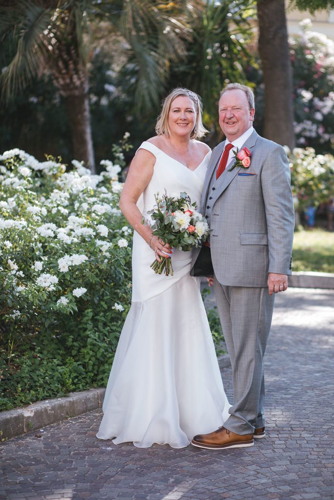 My favourite part of the day was after the ceremony, once we had driven in our vintage Mercedes convertible car back from Sorrento to our hotel. All the locals beeped their car horns and people on the streets shouted 'Auguri' or 'Congratulations' when we passed. But standing on the top terrace of the hotel, wearing my beautiful dress, husband, family and best friend with me, drinking Prosecco in the warm Italian sunshine and looking out at the jaw-dropping views toward Capri. Pure contentment.