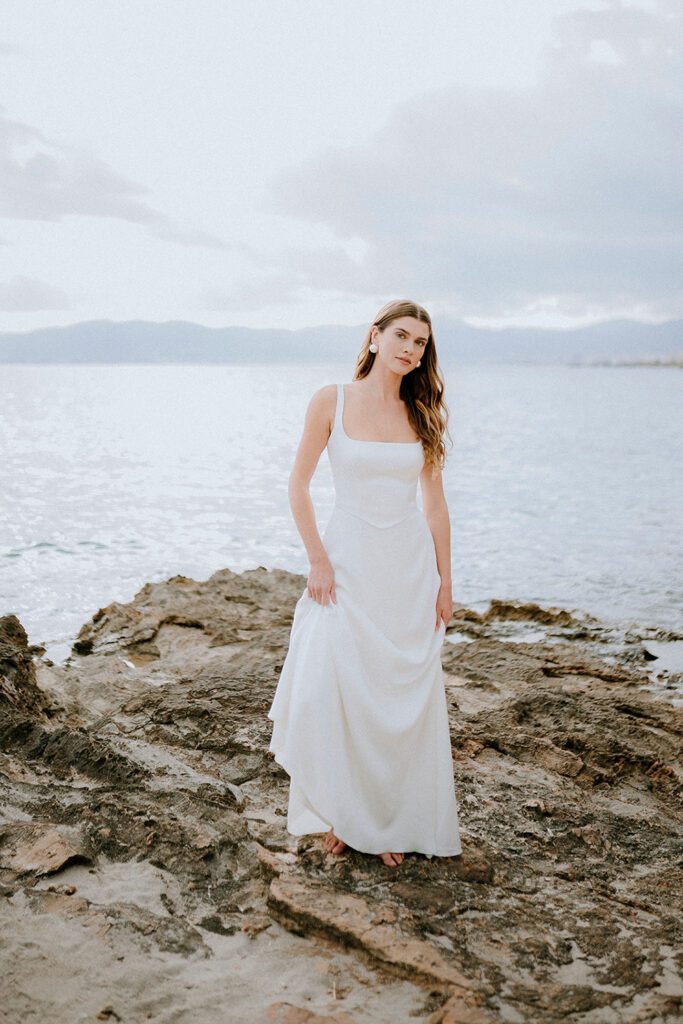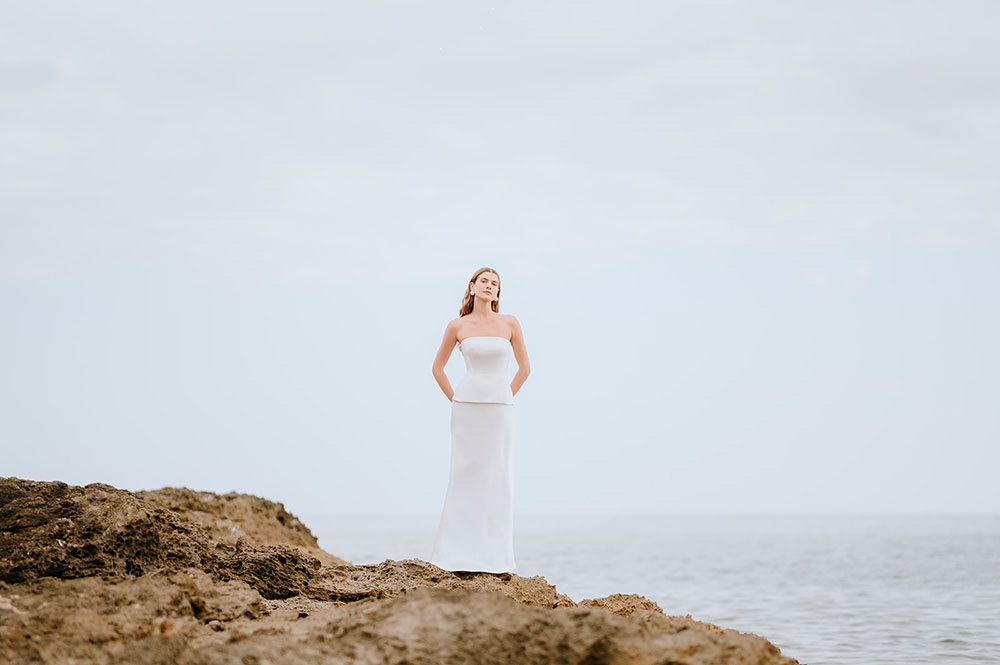 Photographed by Daniela Cursach along the stunning Mediterranean coastline, these images reflect the Spanish heritage, elegant simplicity and clean lines of these beautifully crafted wedding dresses.