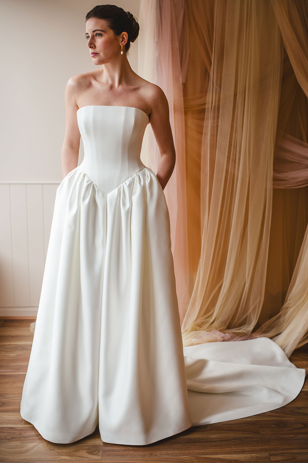 Bridal design rooted in theatre, drama and costume. Influenced by the rebellious heart of British couture, the brand delivers strong shapes for fearless brides.