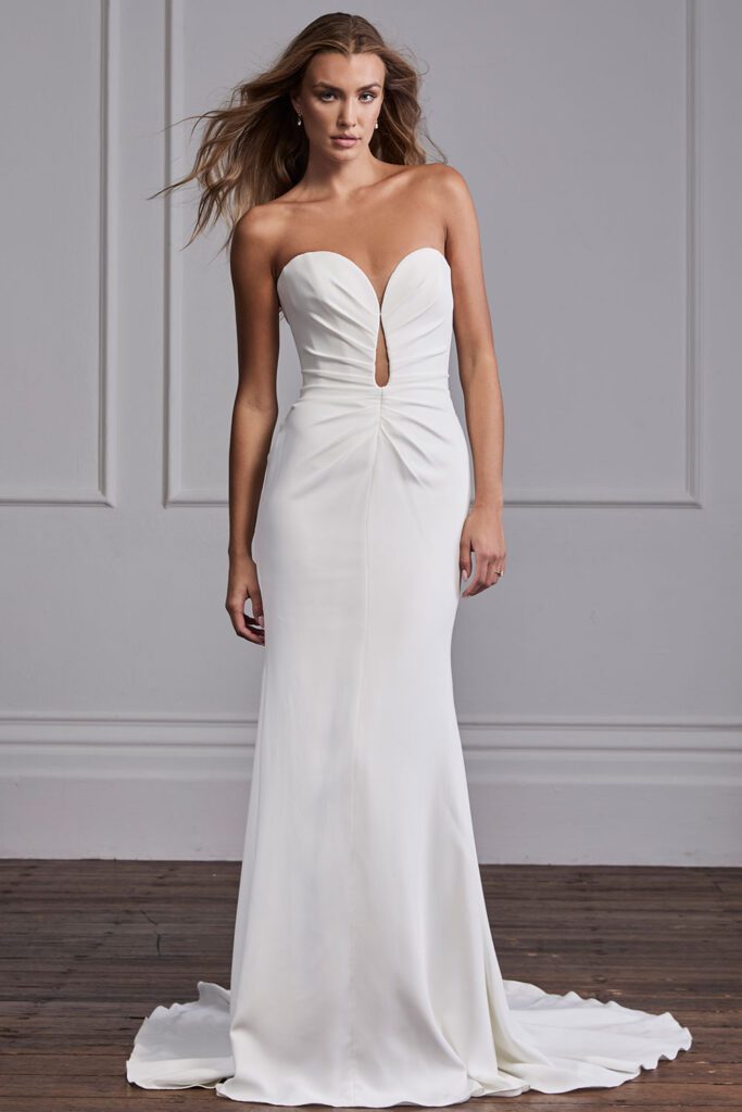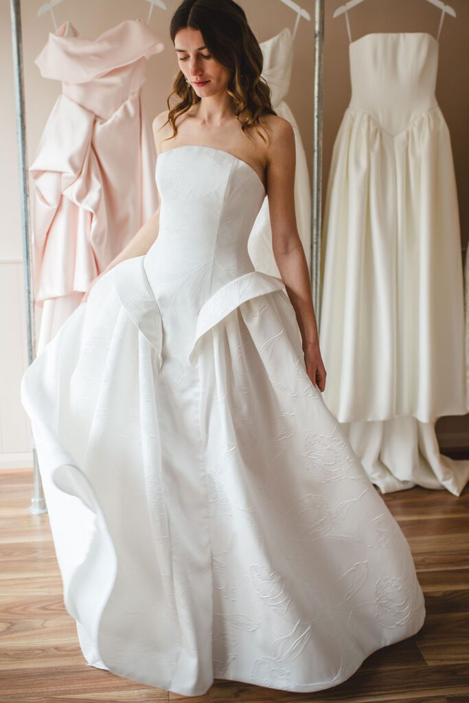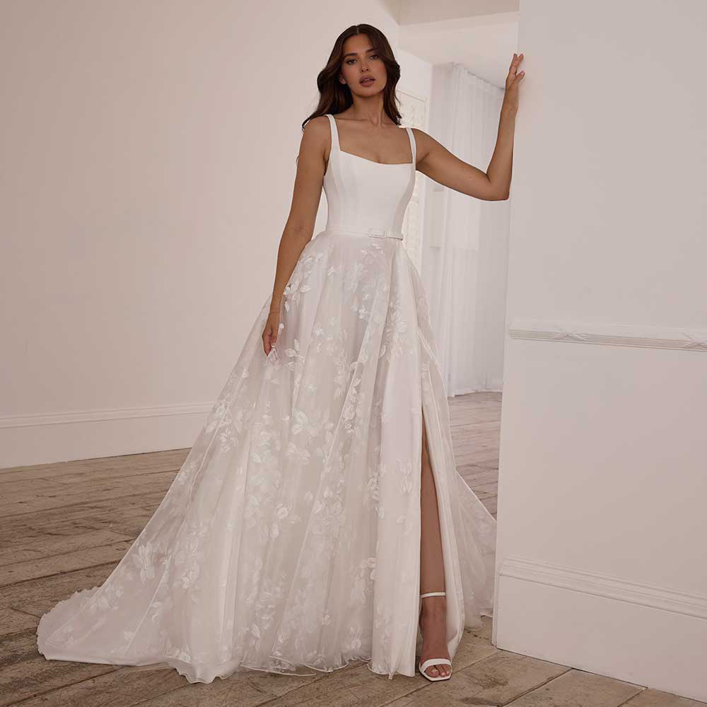 Use the directory below to explore the wedding dresses, bridal separates, jumpsuits and trousers currently available at Miss Bush luxury bridal boutique.