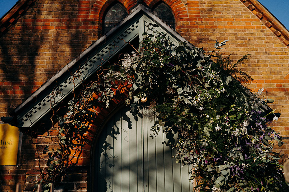 We were delighted to welcome the lovely Becs from Mad Lilies to the chapel, who created her first solo Miss Bush arch; a beautiful seasonal display with rustic foliage completed by a combination of soft off white and rich purple flowers. Inside were more gorgeously styled floral creations, which sat next to a brilliant new retail display from The Wedding Present Company.