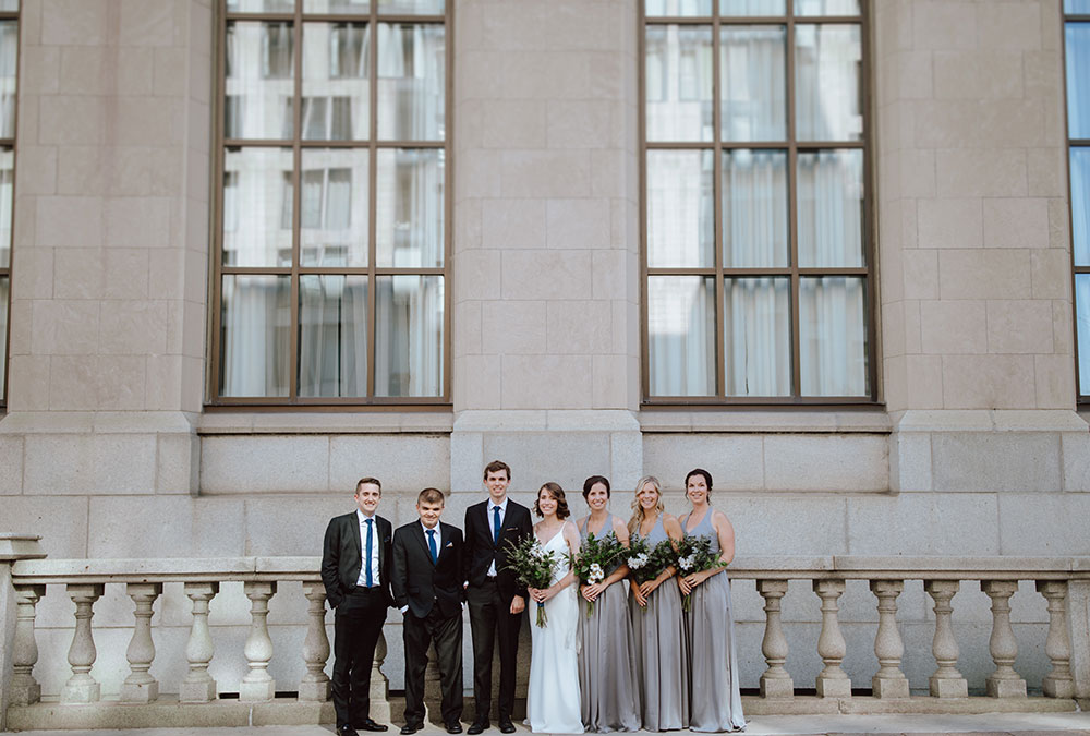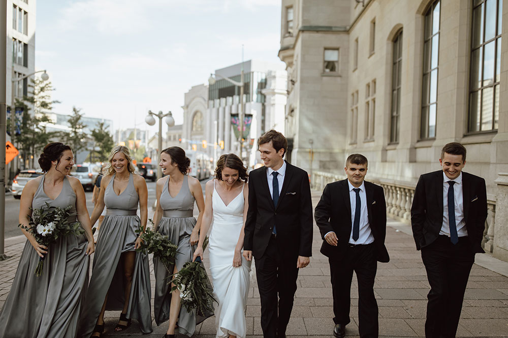 Photographer: Agatha Rowland | Bride’s Shoes: Rachel Simpson | Makeup: Alison Brookes | Hair: Scissors of Os | Venue: RCAF Officers’ Mess, Ontario | Flowers: Costco | Bridesmaids Dresses: David’s Bridal | Flowergirl Dresses: Monsoon | Groom/groomsmen ties and pocket squares: House of Fraser | Bridesmaid Necklaces: GLDN | Cake: Windmill Cake Co. | Wedding Bands: Whibleys