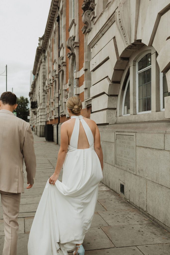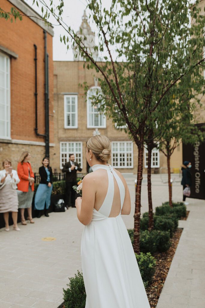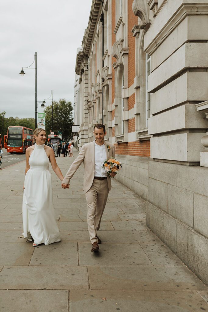 Despite the wedding being a lot smaller than planned, we're so pleased that Sophie still decided to wear her dress - it looked beautiful, chic and elegant, and resulted in some gorgeous portraits of Sophie and Sam walking through the streets of London.