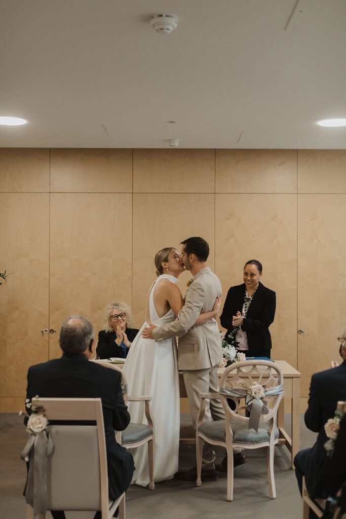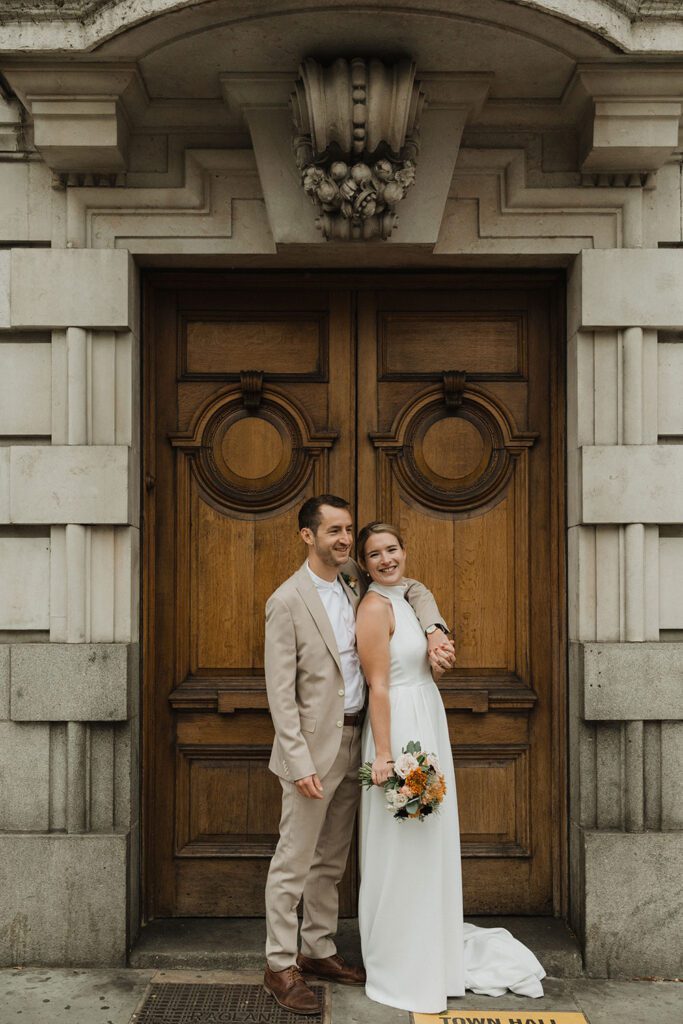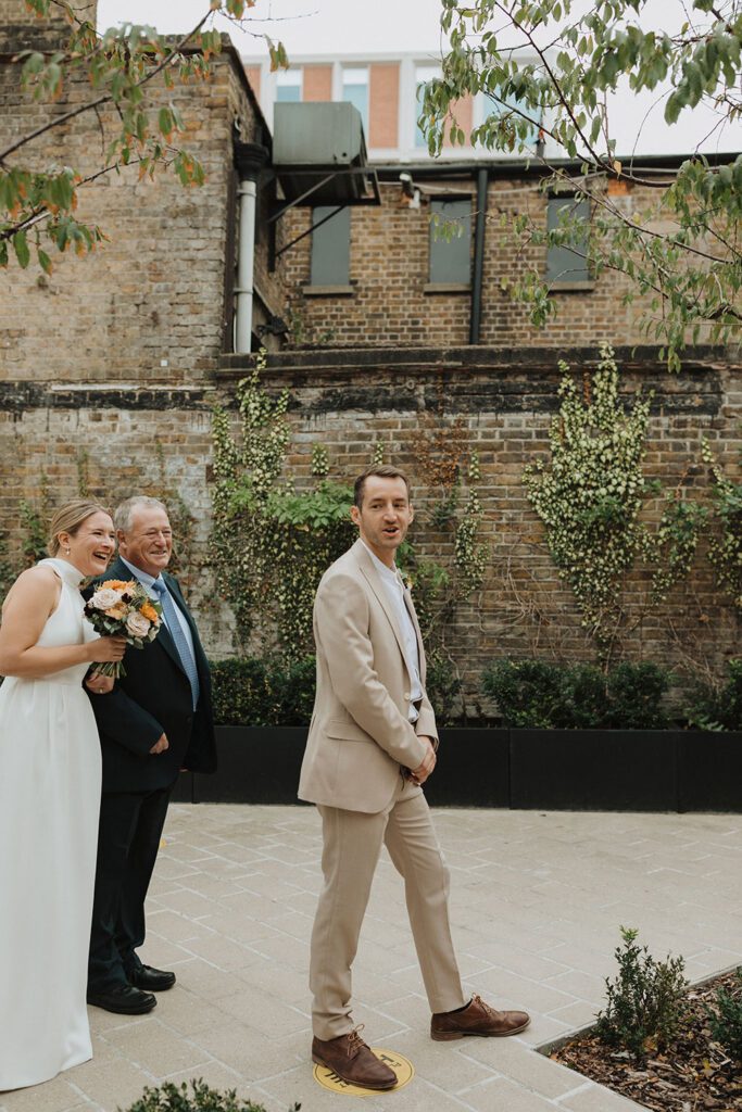 As it was a "covid secure"/no frills ceremony we couldn't have separate bride/groom entrance and my Dad couldn't walk me down the aisle. So instead we decided to do a "first look" with our photographer, where my Dad and I walked in together to the town hall courtyard and Sam saw me & the dress for the first time. This was probably the most emotional point of the day and we were both just so happy to be there getting married. And there some really special pictures of me and my Dad which I am glad we captured.