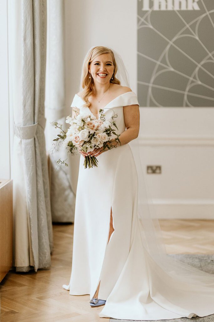 I choose a single layer, cathedral length veil, I really wanted the simplicity for the dress and fit to be the feature. I wore blue manolos which my lovely husband bought as a surprise before I even got the dress! All my jewellery was vintage, inspired by my engagement ring from my granny.