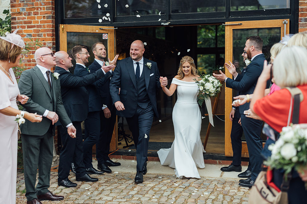 Hayley and Ryan's classic Surrey wedding took place at The Barn at Bury Court in mid October, with warm, cosy Autumnal vibes in keeping with the season. The barn was decorated with tons of rich green foliage and soft white flowers, with romantic candles and twinkling fairy lights for added cosiness.